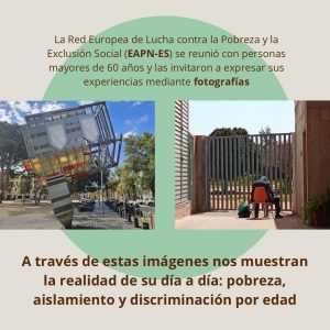 Para llevarla a cabo, se reunieron con personas mayores de 60 años en situación de vulnerabilidad y les invitaron a expresar, mediante fotografías, las problemáticas que enfrentan en su día a día: pobreza, soledad no deseada y edadismo.