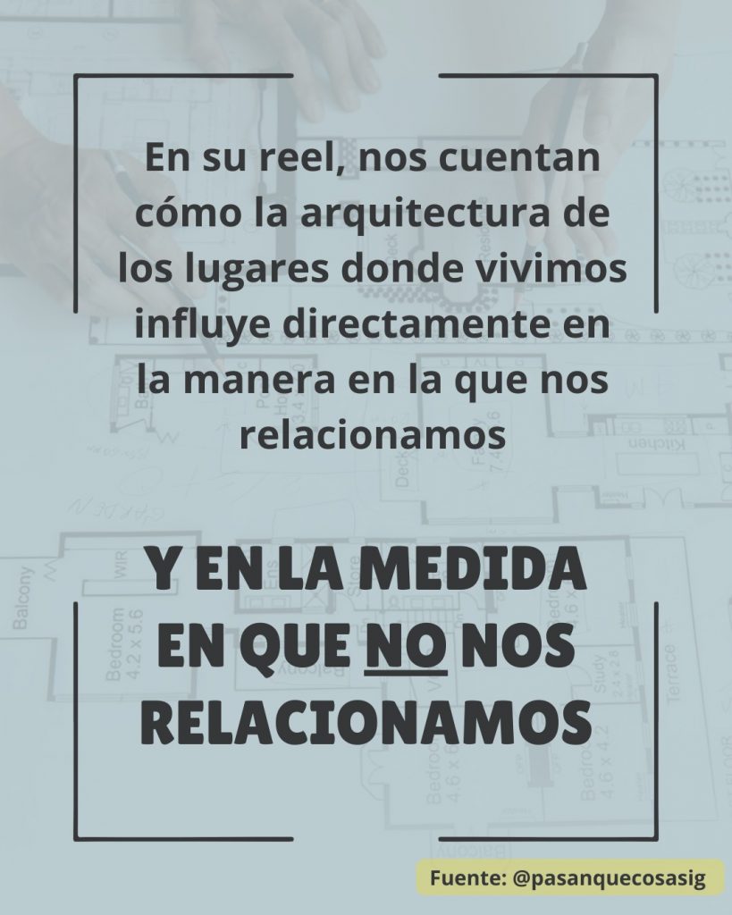 Hoy, de la mano del reel de @pasanquecosasig exploramos cómo la arquitectura dialoga directamente con la Intervención Social y Comunitaria, recordándonos que los espacios que habitamos no son neutros: Nos afectan, nos moldean y facilitan (o dificultan) las relaciones sociales.